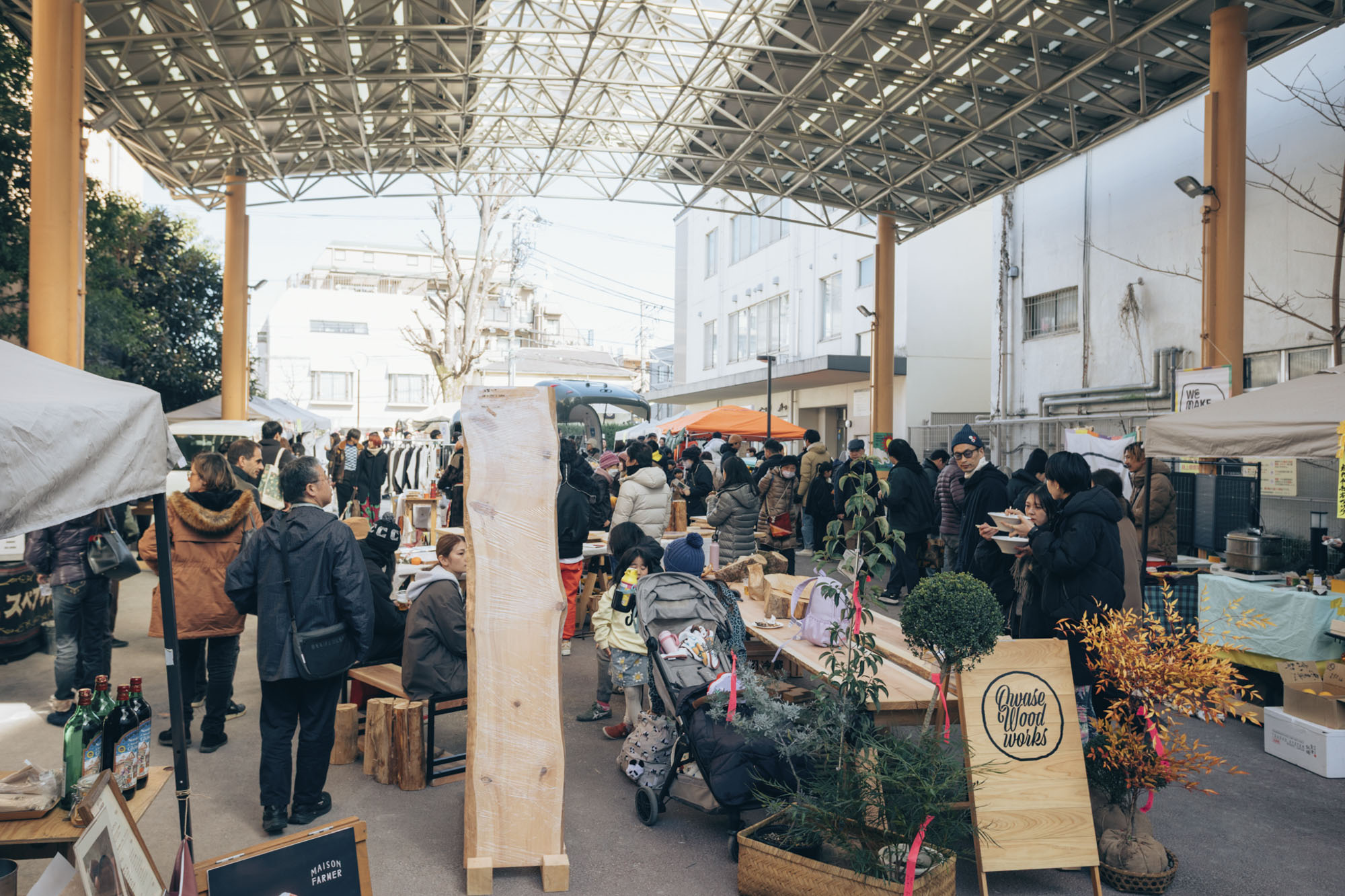 会場となった「三軒茶屋ふれあい広場」には、新鮮な野菜や加工食品、クラフト雑貨、コーヒーやワインなど、約50の出店が並びました。