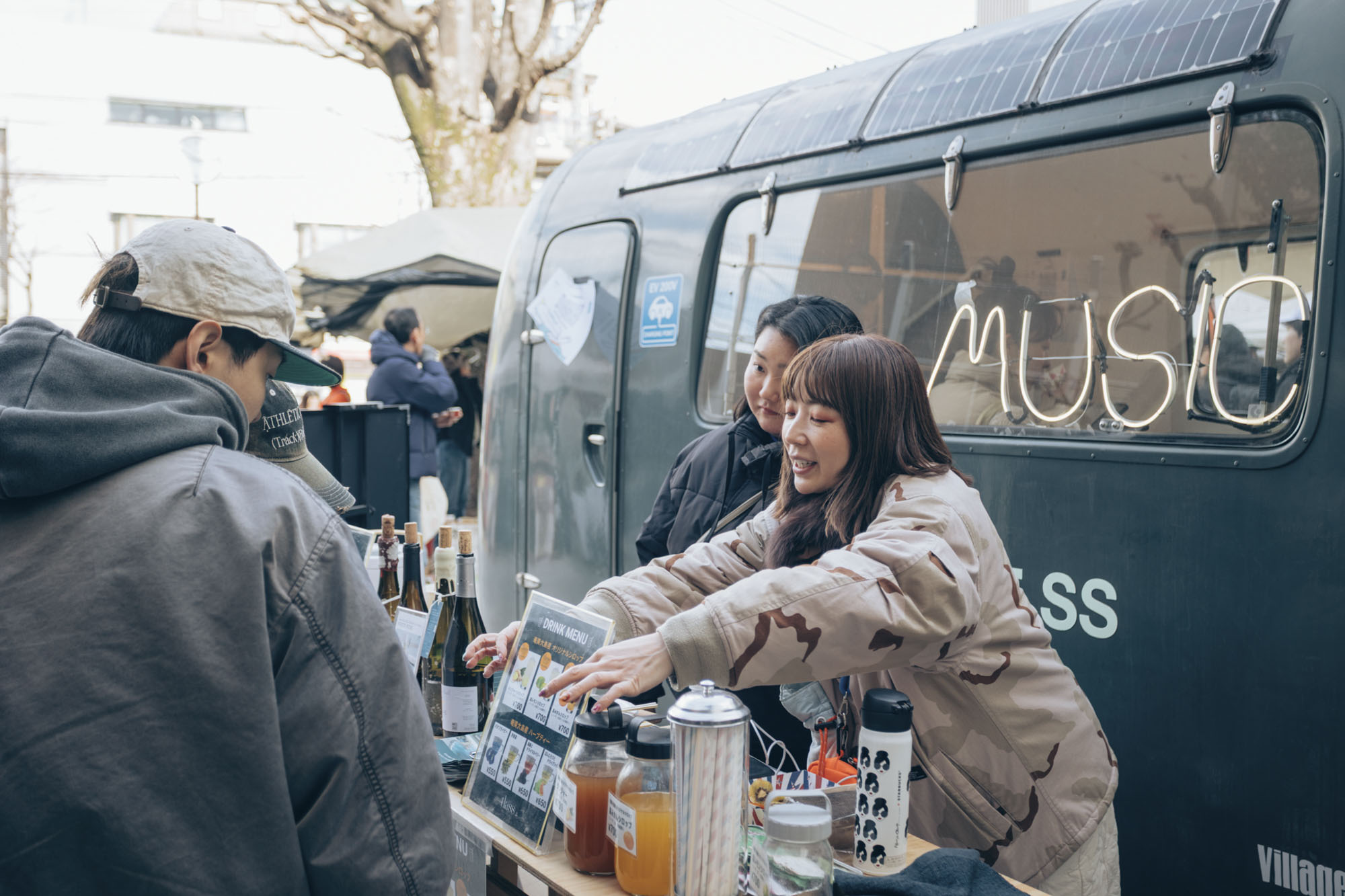 私たちのMobile SSは、マーケットに賑わいを生むBGMの音源として、トレーラーに併設したワインバーの電源として、太陽光発電による電力供給とオフグリッドな暮らしを体感できる展示を行いました。