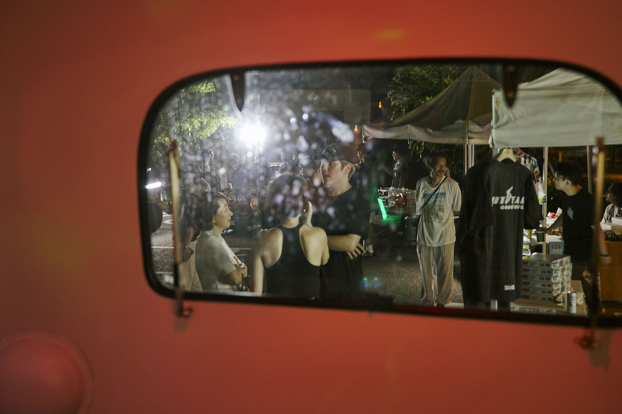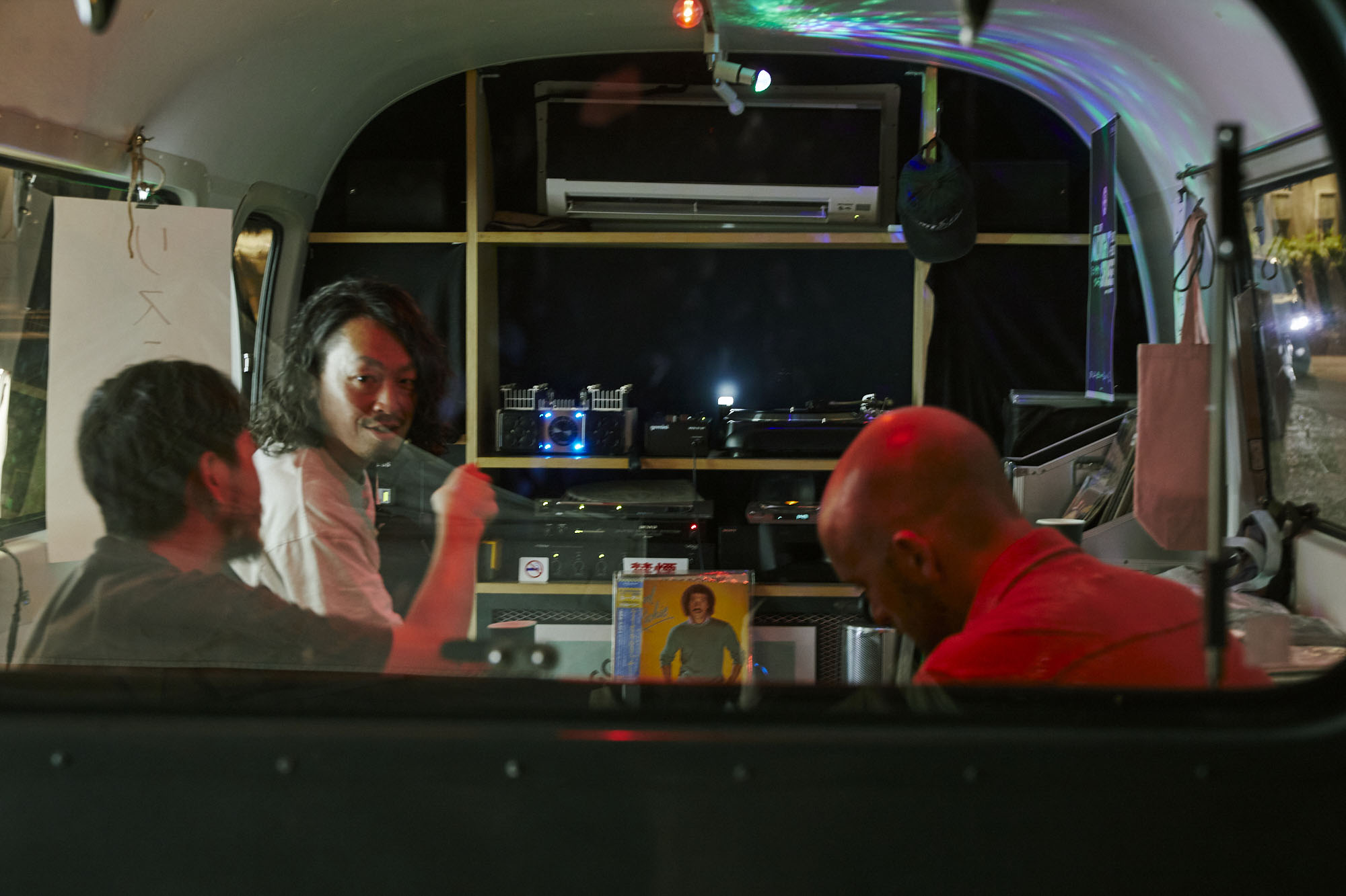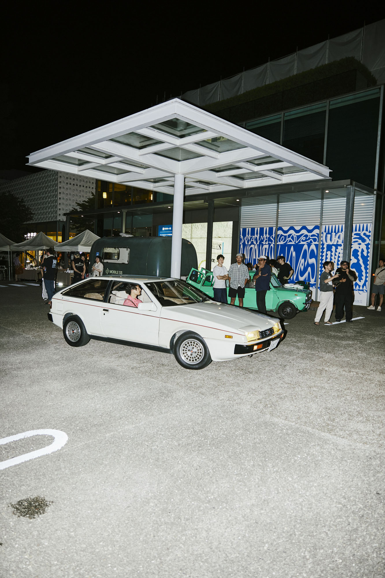 Mobile SS内のターンテーブルから流れるBGMは、ジャズ、ソウル、シティポップ、そしてアーバンなテクノまで時間とともに変化し、車のボディに映るライトの反射、真空管の熱が重なり合い、代官山の夜が“電気のオアシス”に。